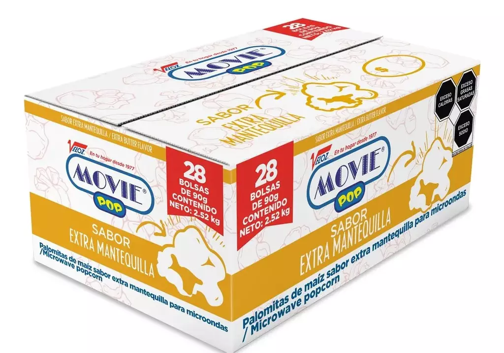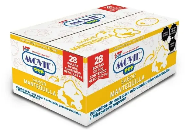 Palomita para microondas sabor extra-mantequilla. Caja con 28 piezas